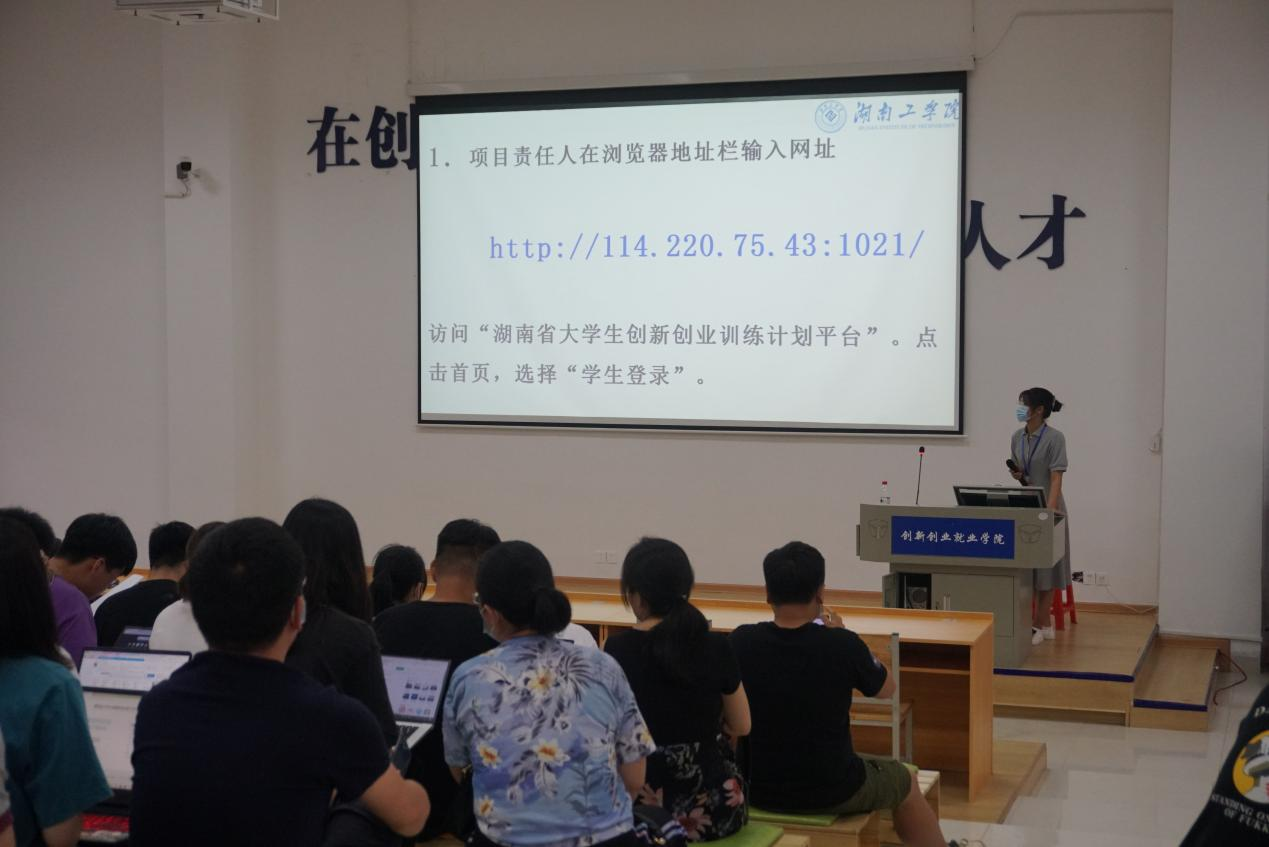 培训会上,创新竞赛中心负责人陈晓波详细介绍了大学生创新创业训练计划项目管理平台、项目中期管理和结题要求,并就项目经费预算与报账等相关政策进行解读。申报团队代表阳婷就省级项目管理平台进行现场填报演示和经验分享。最后,陈老师和工作人员就项目管理、平台申报细节与各项目团队进行了深入的交流。