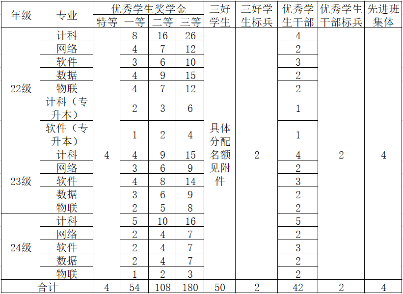 2、“先进班集体”参评对象为计算机学院2022级、2023级、2024级各班级。