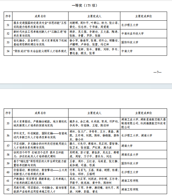 近日,湖南省教育厅正式发布了《关于2025年湖南省高等教育教学成果奖获奖名单的通知》。全省共评选出特等奖50项、一等奖175项、二等奖273项。我院在此次评选中喜获佳绩,陈敏教授主持的《“一核两翼三融合”的地方高校计算机类应用型人才培养体系构建与实践》荣获湖南省高等教育教学成果一等奖。