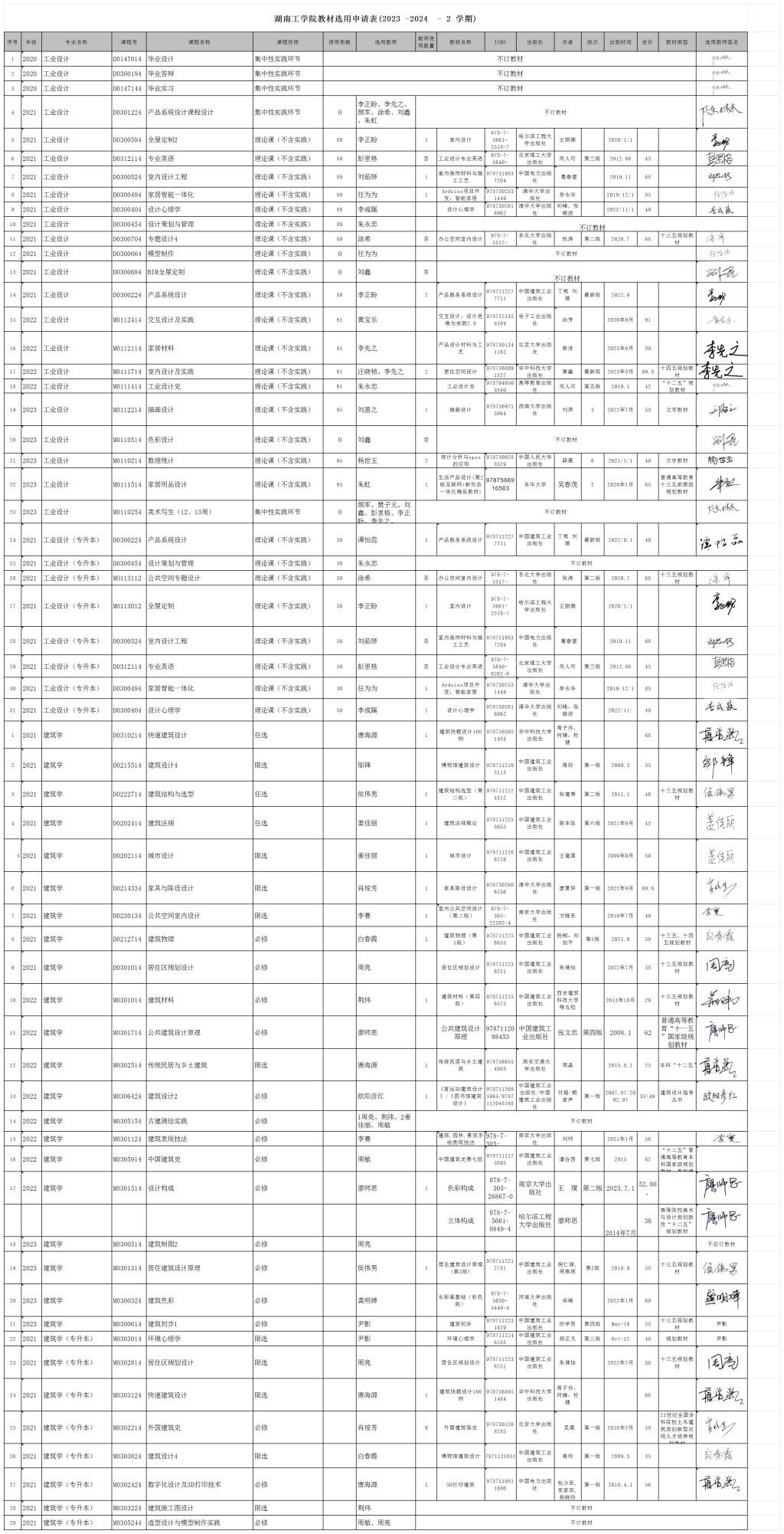 设计艺术学2023-2024-2学期教材选用情况公示