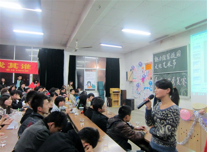 2011年10月28日晚7点,魅力经管校园文化艺术节新生才艺秀复赛T2教室举行。担任本次竞赛评委的有学生会主席团各成员及各部门部长、青协会长及上届新生才艺秀获奖选手。