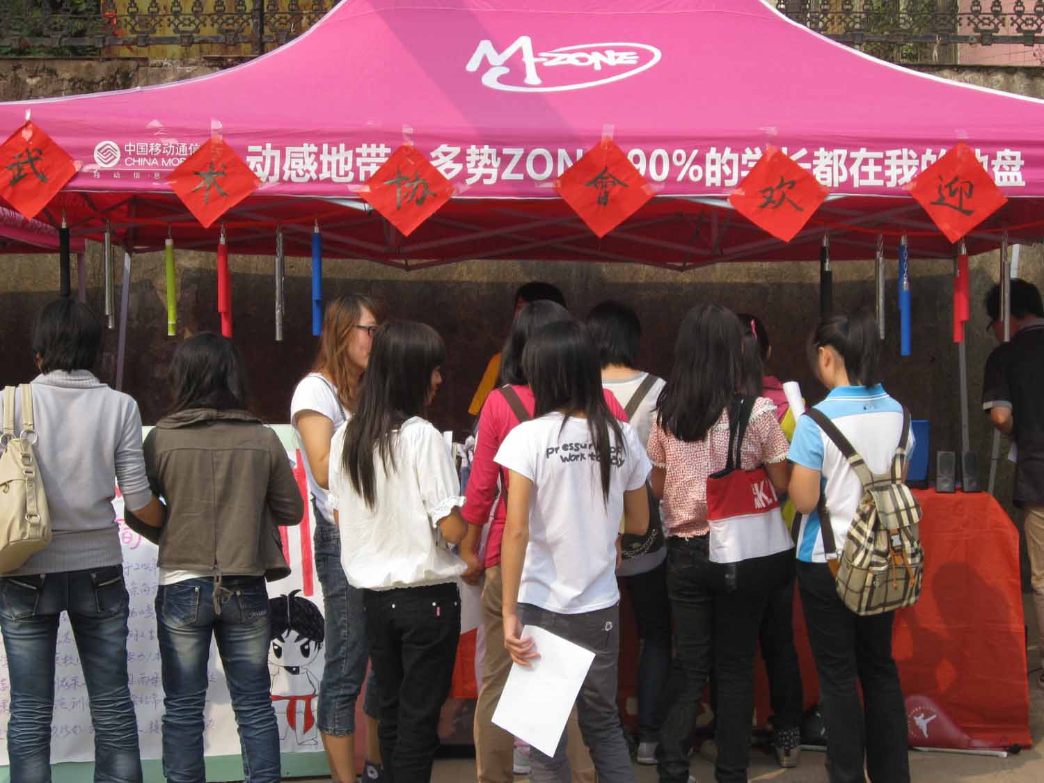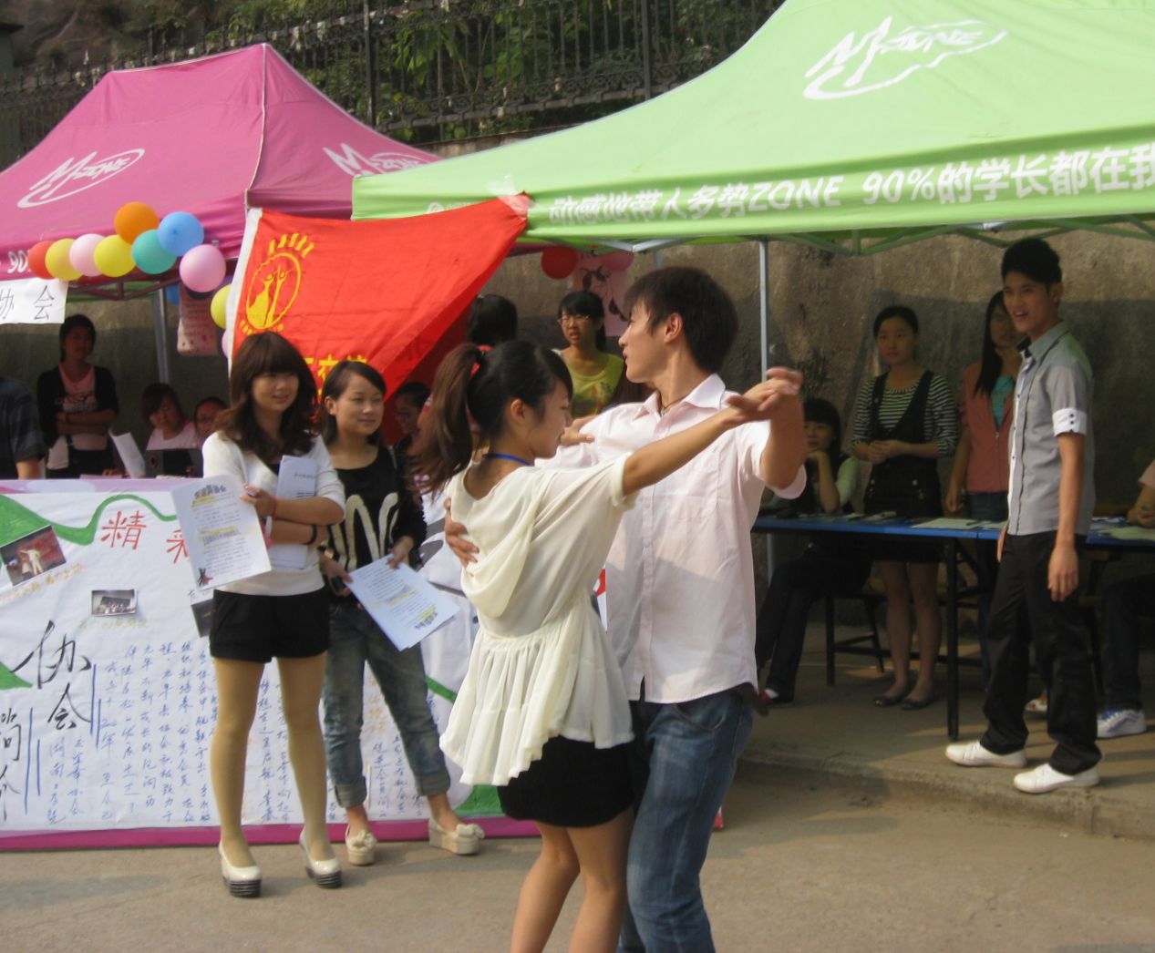 早上七点,各协会做好了一切招新准备积极努力展示本协会的特色化妆协会的现场化妆让学生了解基本的化妆知识服装搭配技巧;交谊舞协会现场大秀舞技,让不少同学对交谊舞产生浓厚兴趣;棋类协会的各种棋阵吸引了很多棋类爱好者观摩探讨;演辩协会的即兴演讲让众多学生停下脚步驻足观看。招新现场报名火爆,气氛热烈。