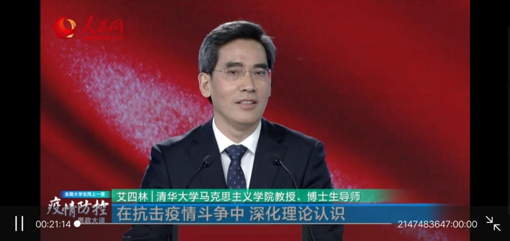 在这堂思政大课中,艾四林、秦宣、王炳林、冯秀军四位教授结合“马克思主义基本原理概论”“毛泽东思想和中国特色社会主义理论体系概论”“中国近现代史纲要”“思想道德修养与法律基础”四门必修课教学内容。解读了防疫期间以习近平同志为核心的党中央的一系列疫情防控决策,分析了中国共产党领导和中国特色社会主义制度的显著优势。他们将疫情防控工作中涌现的案例转化为鲜活课堂,为全国大学生上了一堂直击灵魂的疫情防控思政大课。