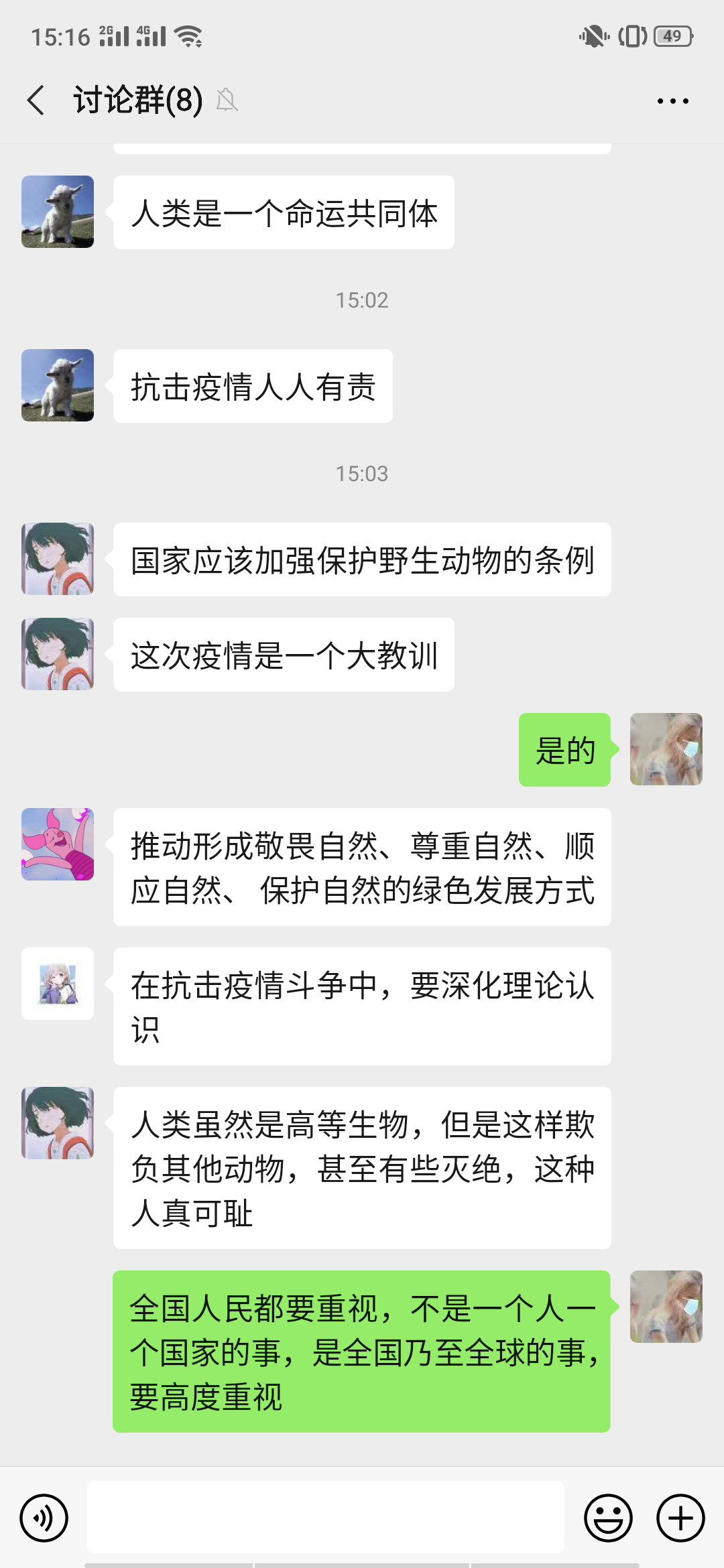 建筑1903班刘富豪在课后感触颇深,他表示这次疫情是场持久战。我们青年目前能做的就是保证自己和周围人的健康安全。身为中国人,这次疫情充分体会了我国的优越制度。坚持配合中国共产党的领导。身边有些人的防范意识还比较薄弱,他会利用互联网积极宣传病毒的危害性和防护措施,为祖国打好后勤工作。