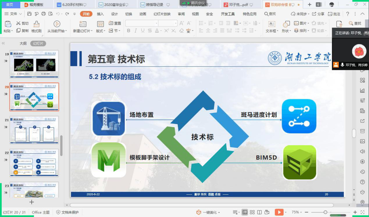 答辩首先进行的是游春华院长代表致辞。游院长从不同角度分享了自己对BIM技术的深入见解以及对大三同学们的深切期盼。接着是参与本次答辩的四个队伍按照会前抽签顺序依次进行PPT讲解及视频展示,呈现了一场精彩绝伦的线上毕业答辩。